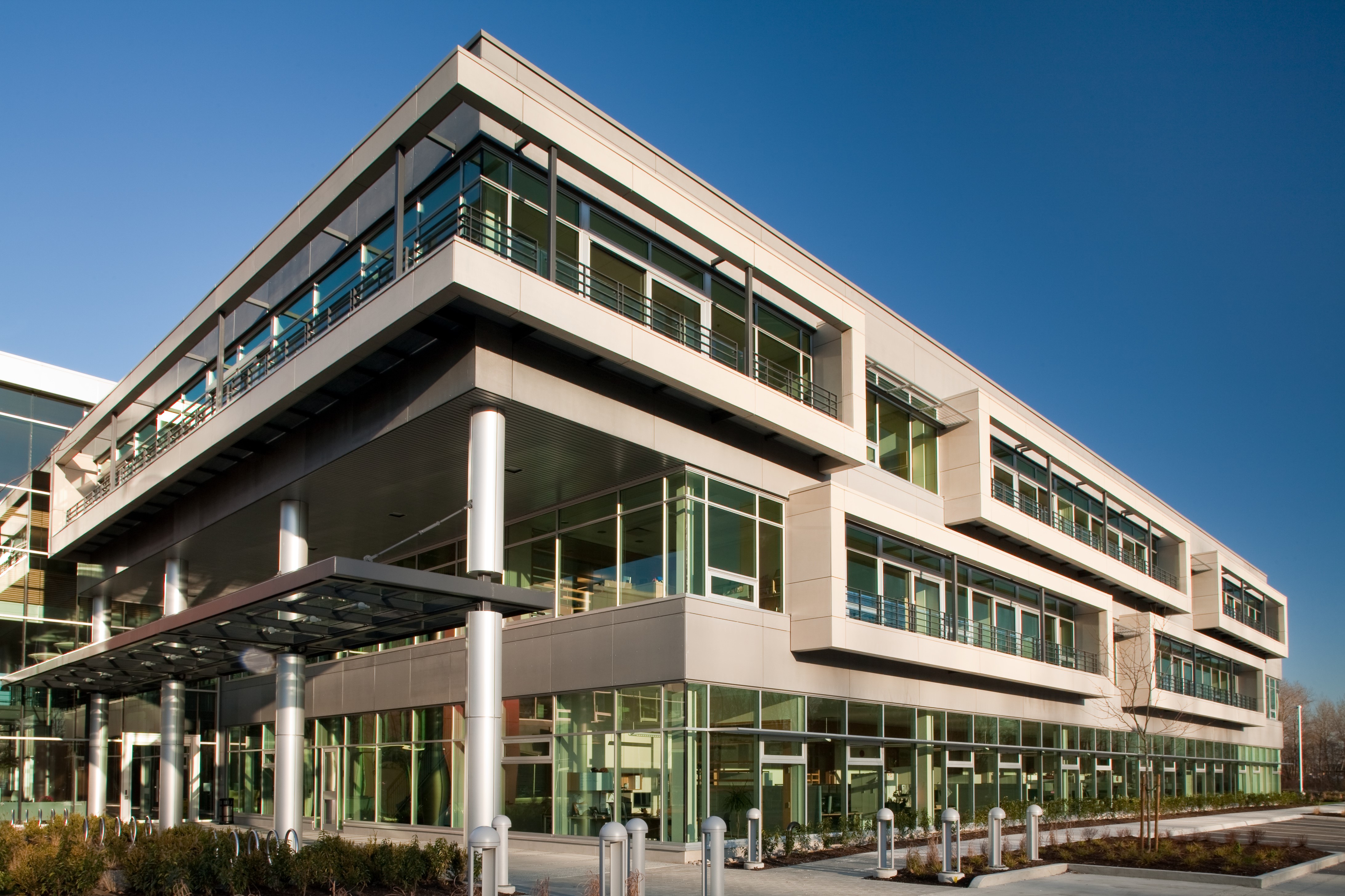 The project is the consolidation of Ritchie Bros. Electronic Auction offices into a purpose built low rise office complex constructed in the Glenlyon Business Park in Burnaby, BC. The structure is a steel framed structure on piled foundation system on poor soils subject to long term settlements with special consideration and detailing to compensate for these site conditions. |
